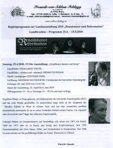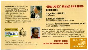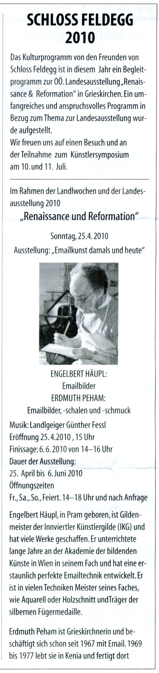 E. Häupl - AusstellungenEngelbert Häupl Ausstellung „Galerie im Troadkasten“ Schloss Feldegg Pram Matthäus HäuplJuli 16, 2025Aug. 5, 2025 25. 04. bis 06. 06. 2010 in der Galerie im Troadkasten Schloß Feldegg/ OÖ Plakat / Einladung Eintrittskarte Freunde Schloß Feldegg Freunde Schloß Feldegg Fotos Der Aufbau Die Ausstellung Die Eröffnung Pressemeldungen Rundschreiben IKG 2010 Lebenslauf Grafische Arbeiten Plastische Arbeiten Sonstige Arbeiten Arbeiten in der Öffentlichkeit Ausstellungen Aus den Fotoalben Filme & Videos Presse-Archiv Liste Ergänzungen E. Häupl Den Künstlern auf der Spur We use cookies to improve your experience on our website Accept Decline