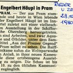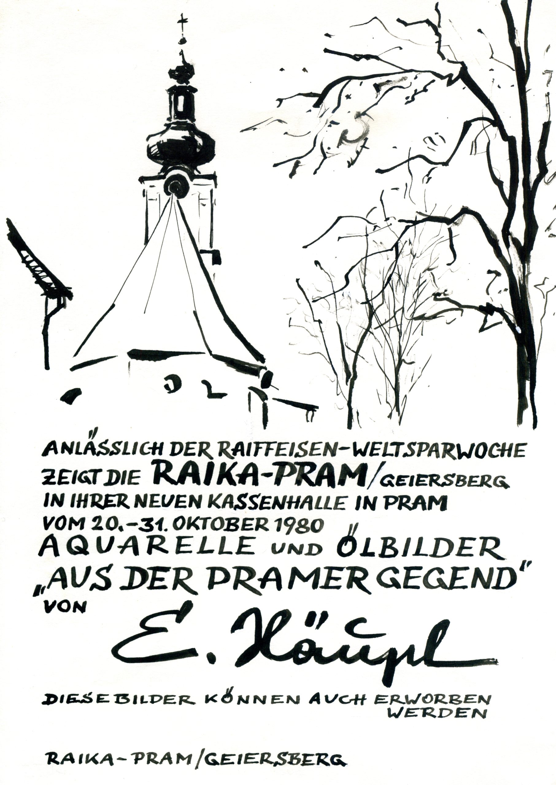 E. Häupl - AusstellungenEngelbert Häupl Ausstellung in der Raika Pram Matthäus HäuplJuli 14, 2025Aug. 5, 2025 20. bis 31. 10. 1980 in der Kassenhalle der Raika Pram / OÖ Plakat / Einladung Plakat Pressemeldungen 23.10.1980 Rieder Volkszeitung Lebenslauf Grafische Arbeiten Plastische Arbeiten Sonstige Arbeiten Arbeiten in der Öffentlichkeit Ausstellungen Aus den Fotoalben Filme & Videos Presse-Archiv Liste Ergänzungen E. Häupl Den Künstlern auf der Spur We use cookies to improve your experience on our website Accept Decline