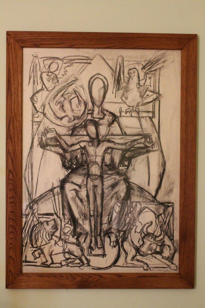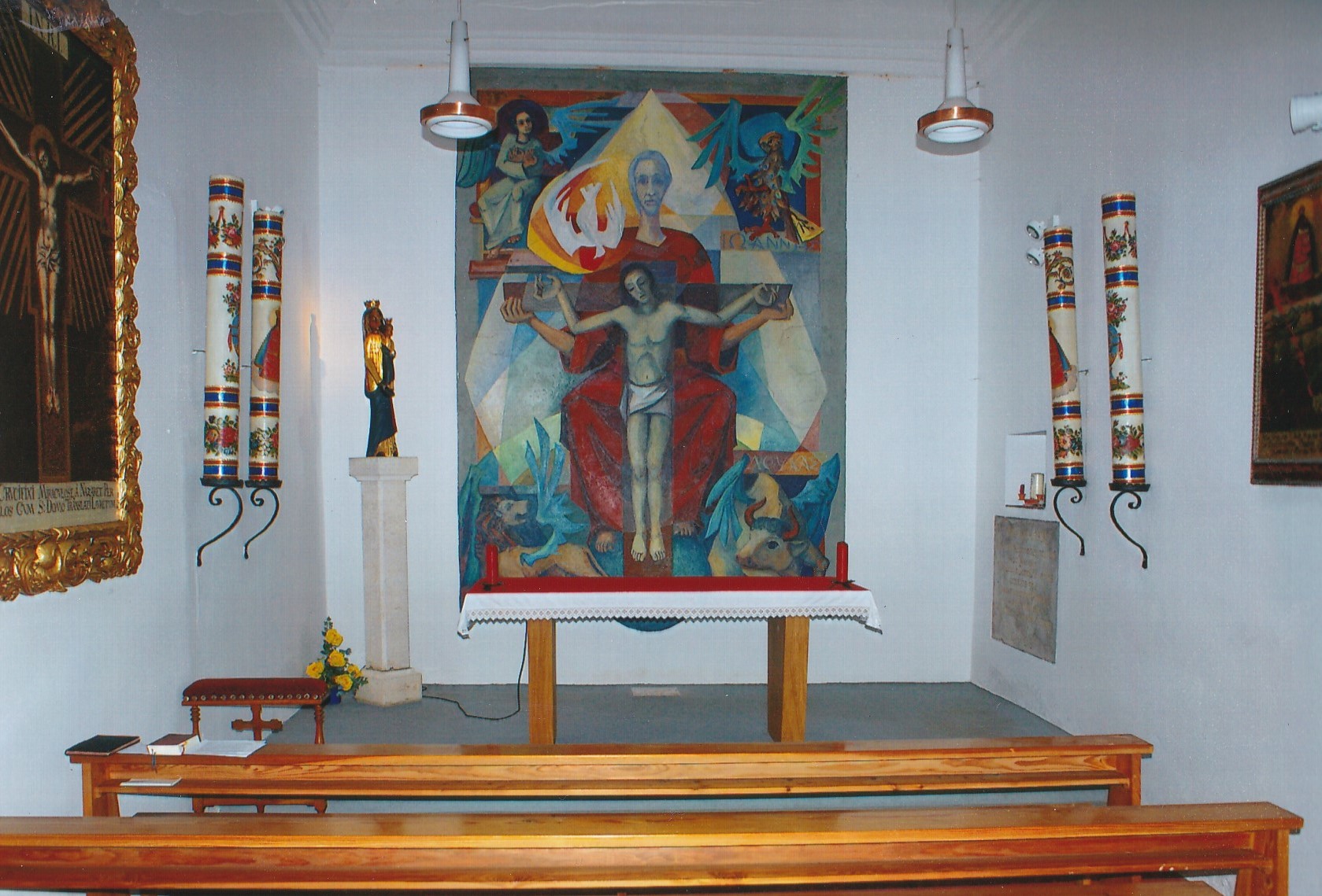 Vom Fresko des Gnadenstuhls, geschaffen von Engelbert Häupl im Jahr 1965,ist auch noch eine schöne Entwurfsskizze erhalten (ca. 85cm x 60cm). Sie hat nach vielen Jahren wieder zurück nach Mautern gefunden und hat hier einen Ehrenplatz bekommen.