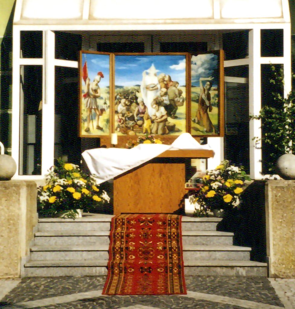 E. Häupl - Arbeiten in der ÖffentlichkeitEngelbert Häupl Fronleichnam-Altar Pram / Oö Matthäus HäuplAug. 8, 2025Sep. 27, 2025 für die Raiffeisenbank Pram 1980 Fronleichnam-Altar Pram Karte wird geladen - bitte warten...Karte konnte nicht geladen werden - bitte aktivieren Sie Javascript!→ Weitere Informationen Fronleichnam-Altar Pram 48.234626, 13.605197 Raiffeisenbank Pram / Oö „Fronleichnam-Altar\" Hofmark 29, 4742 Pram Lebenslauf Grafische Arbeiten Plastische Arbeiten Sonstige Arbeiten Arbeiten in der Öffentlichkeit Ausstellungen Aus den Fotoalben Filme & Videos Presse-Archiv Liste Ergänzungen E. Häupl Den Künstlern auf der Spur We use cookies to improve your experience on our website Accept Decline