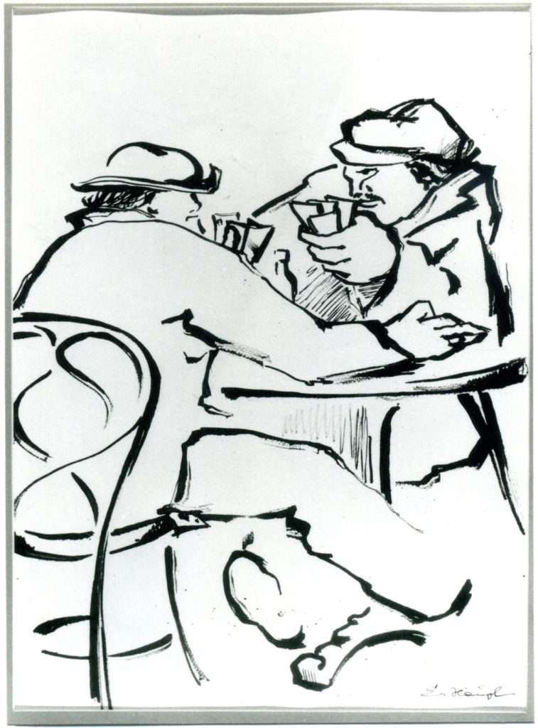 E. Häupl - Arbeiten in der ÖffentlichkeitEngelbert Häupl Grafikzyklus Café Schragl / Wien XX Matthäus HäuplAug. 5, 2025Sep. 16, 2025 „Wiener Kaffeehausszenen“ nicht mehr existent 1986 * nicht mehr existent * Café Schragl „Wiener Kaffeehausszenen' Karte wird geladen - bitte warten...Karte konnte nicht geladen werden - bitte aktivieren Sie Javascript!→ Weitere Informationen Café Schragl „Wiener Kaffeehausszenen\' 48.234774, 16.365497 Grafikzyklus Café Schragl / Wien „Wiener Kaffeehausszenen\" * nicht mehr existent * Klosterneuburger Str. 89, 1200 Wien Lebenslauf Grafische Arbeiten Plastische Arbeiten Sonstige Arbeiten Arbeiten in der Öffentlichkeit Ausstellungen Aus den Fotoalben Filme & Videos Presse-Archiv Liste Ergänzungen E. Häupl Den Künstlern auf der Spur We use cookies to improve your experience on our website Accept Decline
