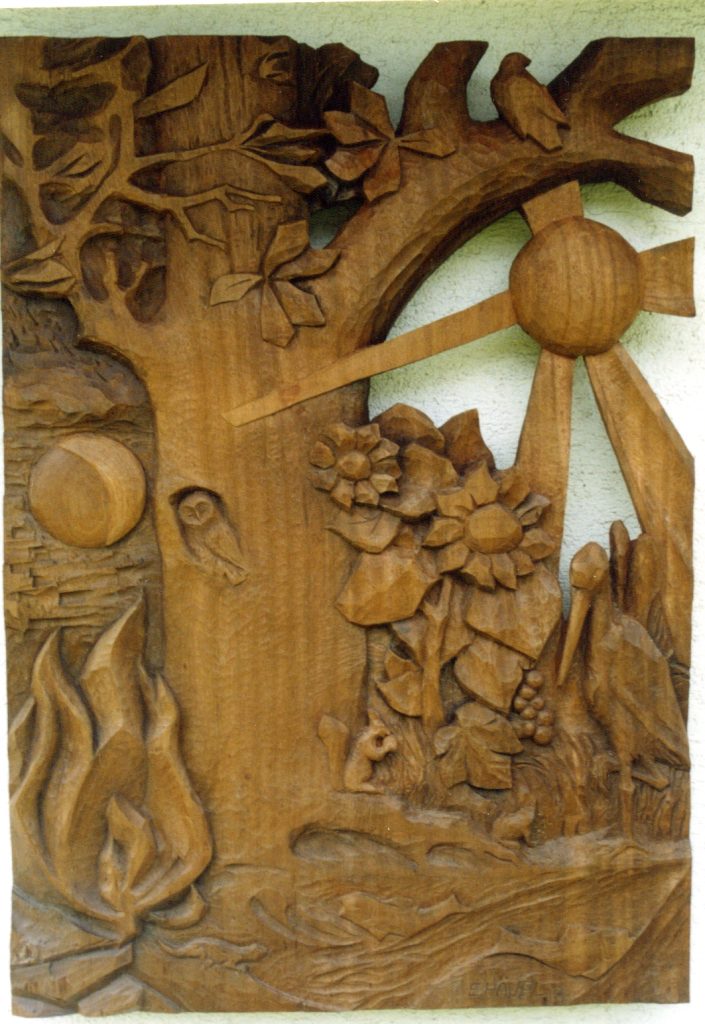 E. Häupl - Arbeiten in der ÖffentlichkeitEngelbert Häupl Hausfassade Hochrelief aus Holz, Pram / Oö Matthäus HäuplAug. 5, 2025Sep. 16, 2025 „Sonnengesang“ 2003 Hausfassade 'Sonnengesang' Karte wird geladen - bitte warten...Karte konnte nicht geladen werden - bitte aktivieren Sie Javascript!→ Weitere Informationen Hausfassade \'Sonnengesang\' 48.238372, 13.602257 Private Hausfassade Holzrelief / Öo „Sonnengesang\" Seestraße 9, 4742 Pram Lebenslauf Grafische Arbeiten Plastische Arbeiten Sonstige Arbeiten Arbeiten in der Öffentlichkeit Ausstellungen Aus den Fotoalben Filme & Videos Presse-Archiv Liste Ergänzungen E. Häupl Den Künstlern auf der Spur We use cookies to improve your experience on our website Accept Decline