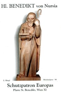 E. Häupl - Arbeiten in der ÖffentlichkeitEngelbert Häupl Holzskulptur, Kirche St. Benedikt Am Leberberg / Wien XI Matthäus HäuplAug. 5, 2025Sep. 16, 2025 „Hl. Benedikt von Nursia“ 1998 Fotos Beschreibung Kirche am Leberberg „HI.Benedikt' Karte wird geladen - bitte warten...Karte konnte nicht geladen werden - bitte aktivieren Sie Javascript!→ Weitere Informationen Kirche am Leberberg „HI.Benedikt\' 48.154813, 16.464182 Kirche St. Benedikt Am Leberberg / Wien Holzskulptur „Hl. Benedikt von Nursia\" Svetelskystraße 9, 1110 Wien Lebenslauf Grafische Arbeiten Plastische Arbeiten Sonstige Arbeiten Arbeiten in der Öffentlichkeit Ausstellungen Aus den Fotoalben Filme & Videos Presse-Archiv Liste Ergänzungen E. Häupl Den Künstlern auf der Spur We use cookies to improve your experience on our website Accept Decline